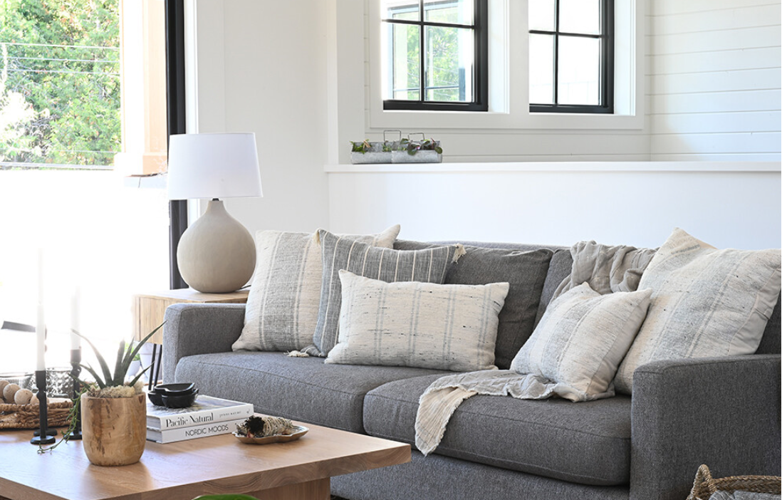 Thick slub weave and timeless stripes make this cushion an instant classic. Filled with a feather down insert, it is as comfortable as it is beautiful.